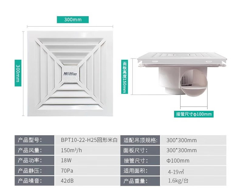 北京绿岛风(Nedfon)排气扇集成吊顶卫生间厨房浴室酒店餐厅换气扇排风扇商用抽风机 银色面板 300*300 BPT10-22-H25,BPT10-23-H30,北京绿岛风30x30集成吊顶换气扇家用卫生间管道排气扇BPT10-22D25,北京绿岛风集成吊顶卫生间排气扇600*600BPT10-34D,集成吊顶600*600BPT15-45-H70